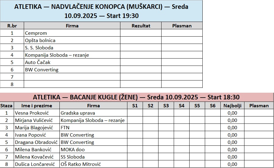 Na sledećem LINKU možete videti preliminarnu listu svih prijavljenih takimčara u atletskim disciplinama.