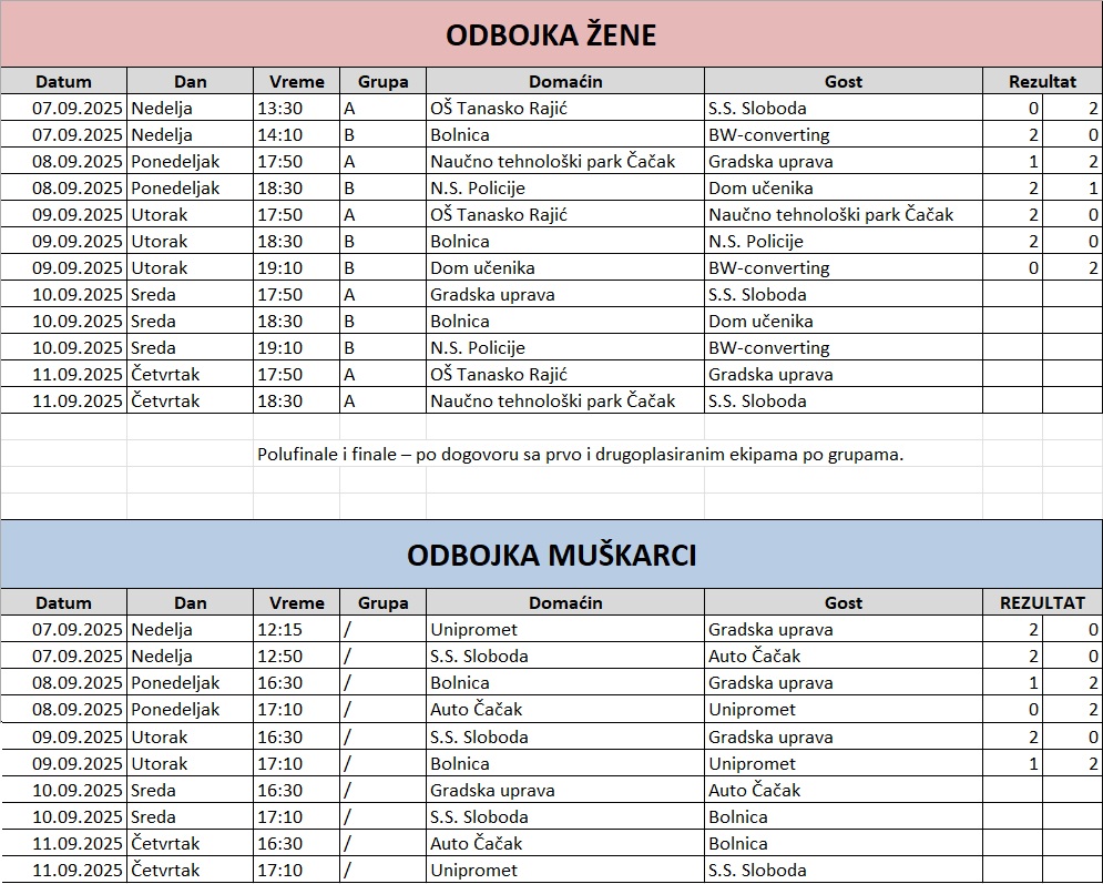 Polufinale 11.09.2025 od 20h